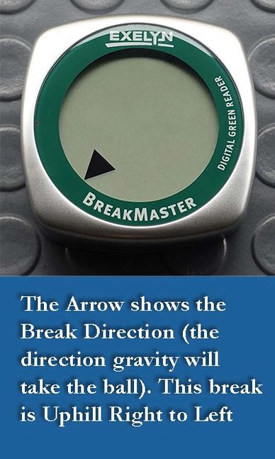 The BreakMaster works equally well in reading an uphill or downhill lie. Simply place the BreakMaster ahead of your ball on line with the hole and its readout will give you a good indication of how much to adjust your stroke for uphill or downhill putts.
